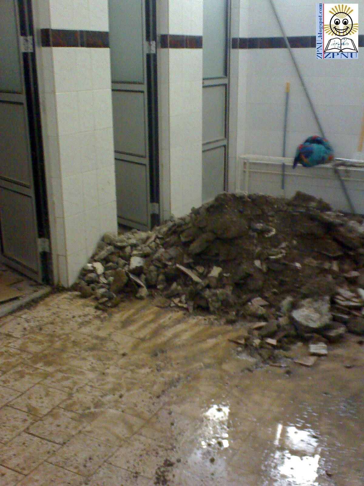 اونجا دو تا کارگر بودن که ازشون در مورد این کار ها پرسیدیم و گفتن که ، داشته از سقف آب میداده و دارن تعمیرش می کنن (اگه یادتون باشه تو پست مستراح ما گفته بودم که یه حفره ای تو سقف بود و هر از چندگاهی ازش آب چیکه می کرد و این آبم که آب .... بود و ... ) این کارگر عزیز هم همین حفره و یا همون گودال عظیم رو تو سقف نشون می داد